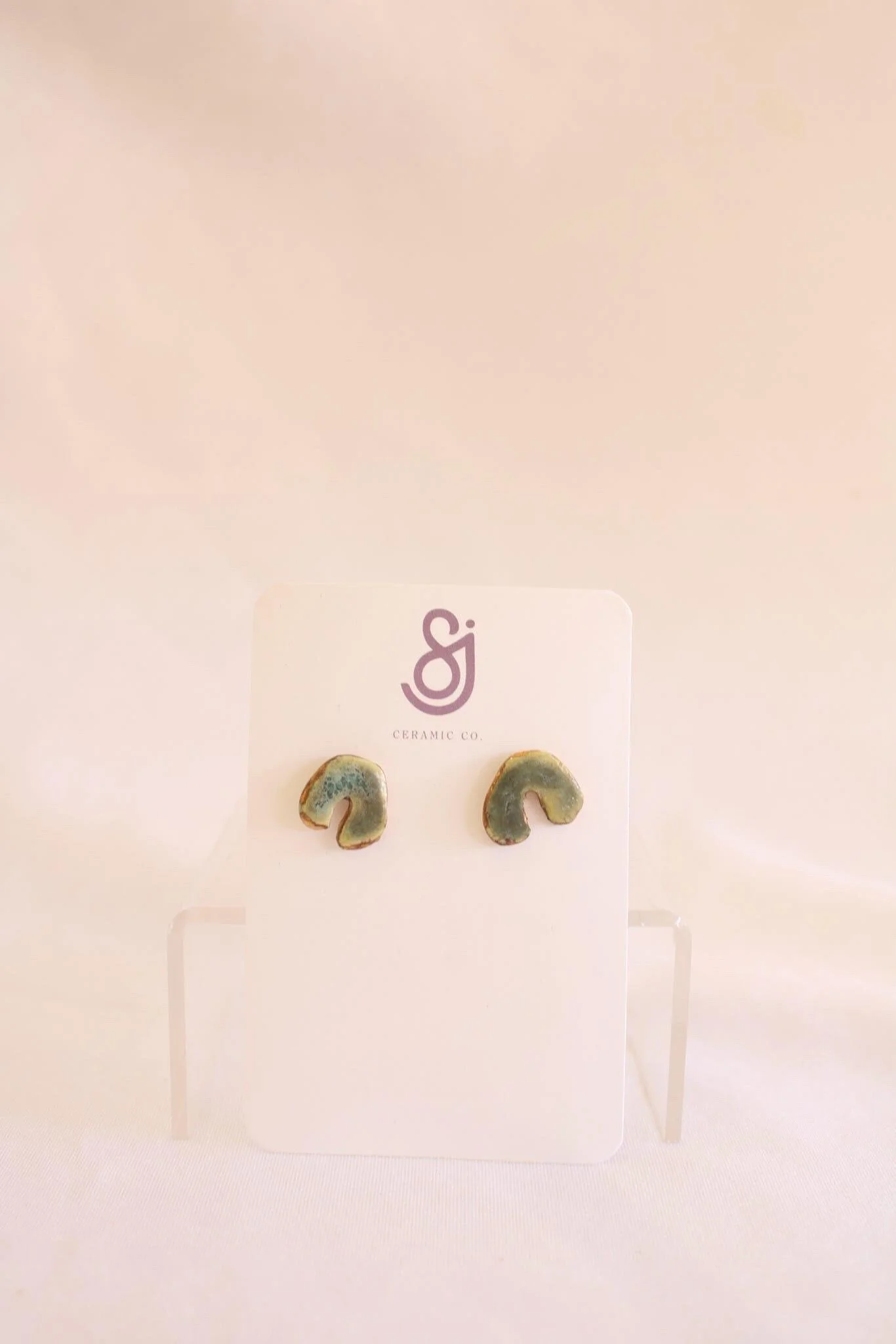 These stud earrings are completely hand cut & crafted from stoneware clay. Next they are glazed then hand painted with 22kt metallic gold luster. All findings are 14k gold filled.